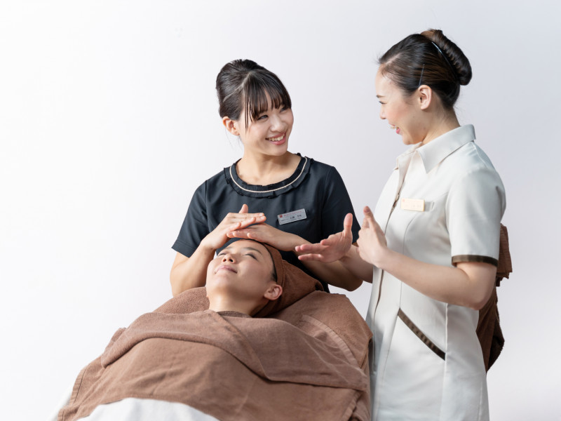 入社後、3ヶ月間配属サロンにて「接客」「知識」「技術」の3つの面を基礎からじっくり学べるOJT研修にて先輩エステティシャンからサロンワークを習得し、その後月に1~2回の本社で行われる知識や理論の講座を受けていただいたあと、晴れてエステティシャンとしてデビューします!!